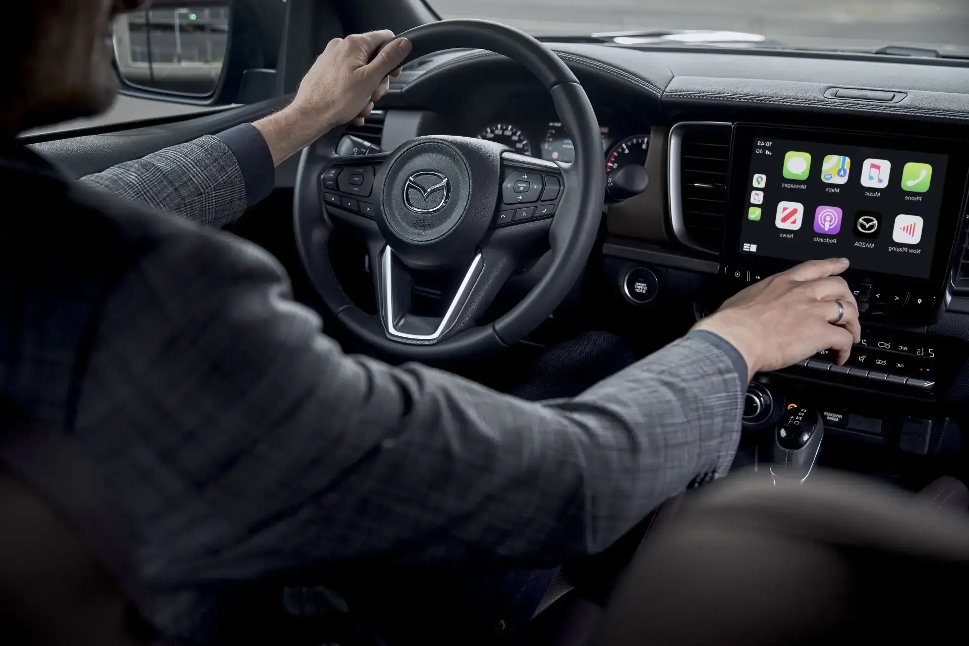El interior de Mazda BT-50 está diseñado para ofrecer un equilibrio perfecto entre comodidad y funcionalidad, ideal para cualquier aventura. Los asientos ergonómicos en materiales premium brindan un soporte excepcional para conductor y pasajeros, incluso en los terrenos más exigentes. Disfruta de cada detalle, desde la amplitud de su doble cabina, hasta la tecnología intuitiva a tu alcance, creando una experiencia única y conectada en cada trayecto.
